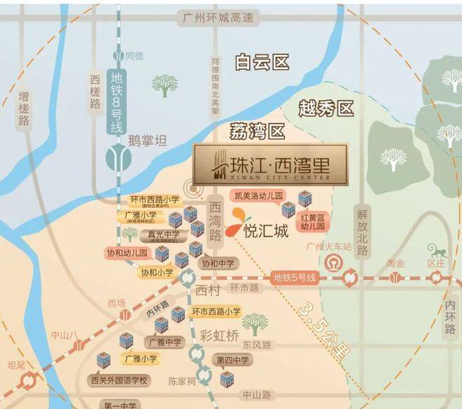 教育资源丰富:位于荔湾区西湾路,约 3.5 公里范围内有 9 所名校学府环绕,为孩子提供了优质的教育资源,助力孩子成长。分析项目教育资源优势。