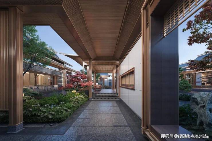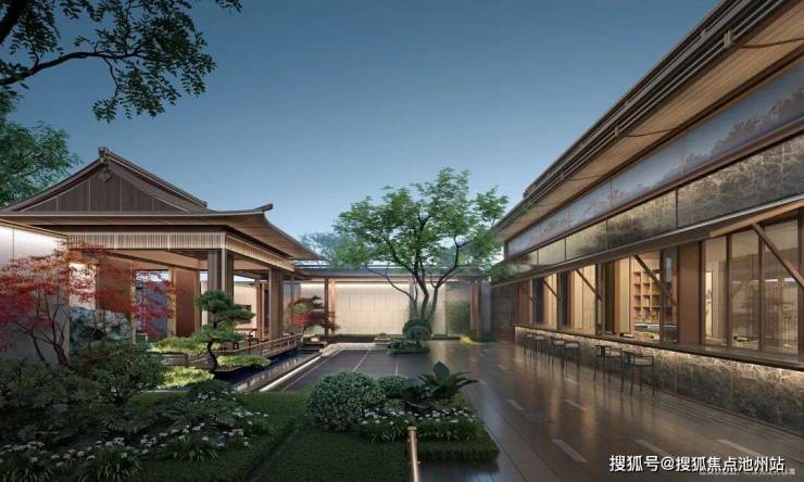 【桂庭集】延续的是《惠山茶会图》的雅集传统,全冠移植百年桂树、黑松与石榴树,搭配宋式茶亭与庭院,宋式茶亭的“版引檐”“避风䈋” 细节精巧,秋日桂香满庭时,邻里围坐煮茶,让“雅趣”成为生活的日常肌理。