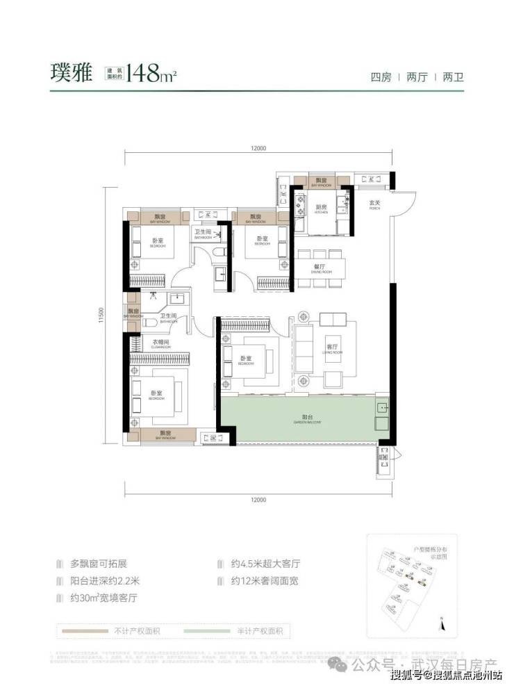 2、准四代住宅产品力全线超越,更懂人居需求,洋房约90-95%高得房率。