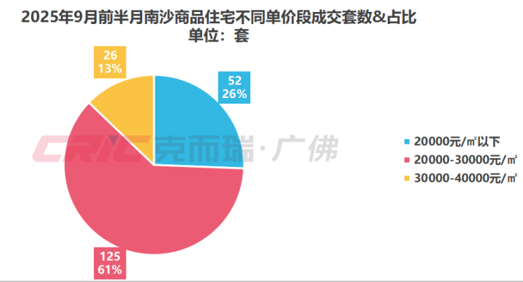 南沙区成交均价结构性环比上涨7%,为十一区最高,主要是因为9月前半月(截至15日)2-3万元/㎡单价段成交占比达到了61%,环比8月前半月(截至15日)增长5%,主要得益于科苑壹号的集中网签。