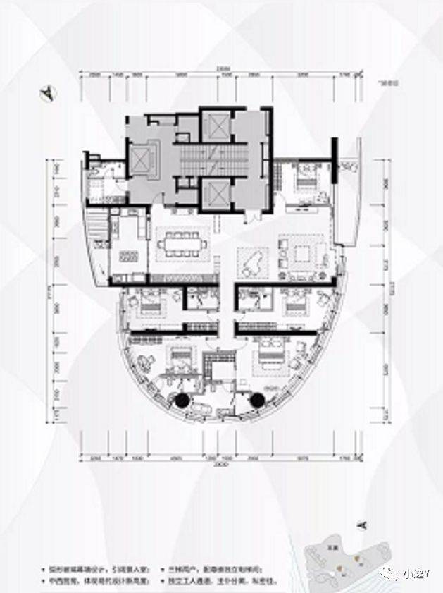 以现代前沿的建筑艺术美学语言,将“丝路扬帆”的意境融入建筑立面的设计中,以“丝路扬帆”的优美弧线,致敬人文的一段江。项目重金聘请美国HBA、美国