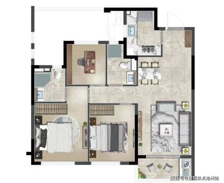 这样一片充满改善气质的土地,湖沁宸园几乎全部做了小户型。一共1760套可售房源中,100㎡以下小户型占比超过65%。这意味着,将会有上千套总价约200万的房源井喷入市。起步格局就是三房两卫。约98㎡中间套,南向面宽近10米,三开间朝南,客厅连着一个约3.5米宽的阳台。我数了下,整个户型可做到7面通风采光,包括两个明卫。约98㎡边套,拥有约5.7米宽的餐客一体化纵向大边厅。朝南次卧面宽也有约3米,为生活留足空间。预算宽裕一点的家庭,一步到位买个约118㎡边套。四房两卫格局,主卧配独立衣帽间,纵向一体化餐客厅尺度达到了约6米,还带一个大飘窗。