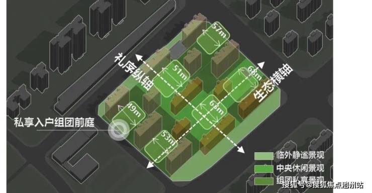 最令人眼前一亮的,是首开区1:1的楼高间距比——两楼间距至少要等于南向楼高,这是我刚入行时,规划部门对多层住宅日照间距的最低要求,目的是保障低楼层的日照。这在小高层、高层住宅一向被认为是不可能实现的指标,保利维璟天珺却通过楼栋点状错动排布,成功做到首开区1:1楼高间距比,最大楼间距可达74m,这使得首开2号楼是所有建面约149㎡四室两厅三卫户型中楼距最大、景观面最好的房源,哪怕一楼住户在寒冷的冬天也能阳光明媚,居住品质实现质的飞跃。