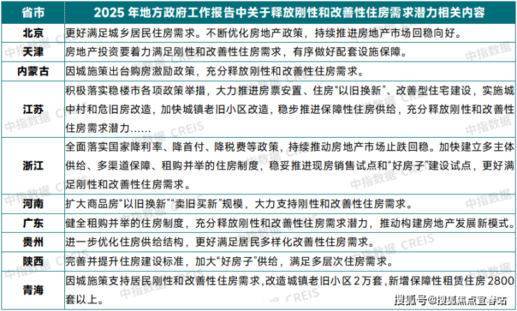 表:2025年部分省市政府工作报告中需求端政策相关表述资料来源:各省市政府工作报告,中指研究院综合整理