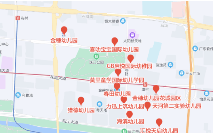 项目周边配套完善,涵盖教育、商业、医疗及休闲娱乐等多方面资源。教育方面,社区自带广粤春田幼儿园,同时整个凯旋新世界配有两所幼儿园,并与广州市天河区第一实验小学及天河中学花城校区形成良好教育配套,直升学校距离合理,保障学龄儿童的教育便利性。商业配套方面,凯旋新世界内置广粤天地商业区,该区域汇集世界美食、文化艺术、购物休闲等多元业态,是珠江新城CBD商业地标。医疗方面,社区周边约500米为猎德街社区卫生服务中心,且附近有三甲医院包括暨南大学附属第一医院、广州市妇女儿童医疗中心及中山三院,为业主提供高品质医疗保障。休闲娱乐方面,社区园林及低容积率布局为居民提供广阔的生活空间,同时结合珠江新城沿江景观,实现都市与自然的无缝连接,为居住者提供优质生活体验。