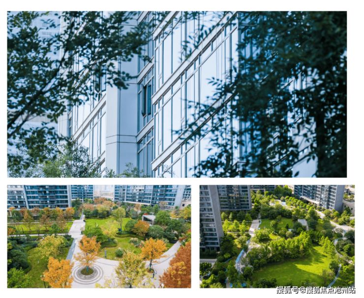 项目建筑采用围合式布局,形成约1.6万方中央景观公园,让位更多土地给自然风景,阳光、草坪以及多元植被组成的风景映衬在公建化立面的框景玻璃上,让建筑成为内可观江,外可赏园的景观容器。洺悦江湾对于品质的追求,构成了项目强有力的核心竞争力。