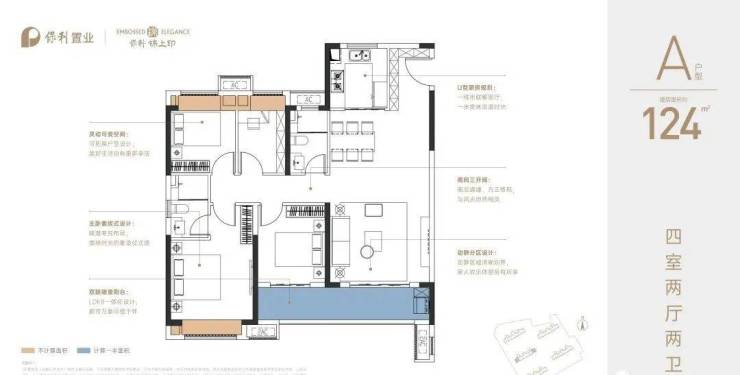 建面约124平四房