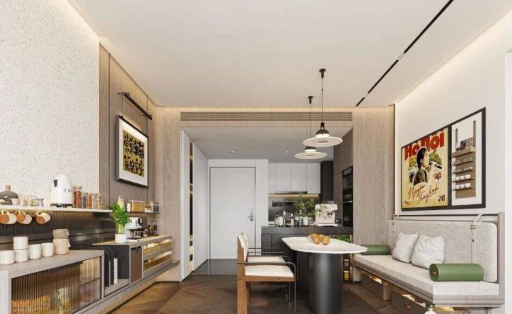 厨房餐厅客厅一体的空间布局,极大程度的丰富了生活场景。更为难得的是,一家人能在同一个空间里做自己喜欢的事情,完美兼顾个人爱好与家人陪伴。