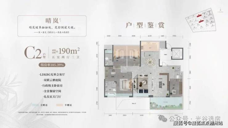 这是该盘的门槛户型,非真四代住宅设计,无空中花园。但是94.6%的得房率也相当高了。有将近7个平方的私享电梯厅,这个配置头一次出现在这个面积段的产品上。