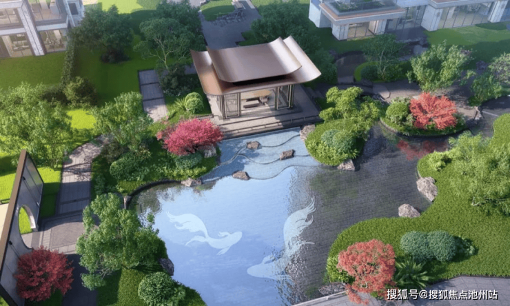 水景部分,玺云复刻寄畅园的“锦汇漪”,缔造葫芦形状的中央水景,谐音“福禄”寓意福禄双全;