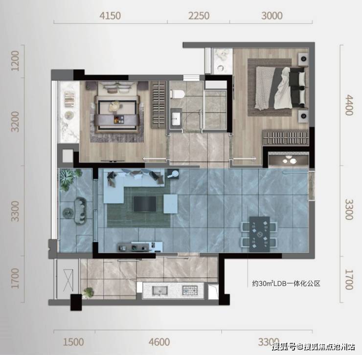 【D户型 两室两厅一卫】套内约67㎡ 建面约83㎡ 采用市场主流的LDB一体化设计,公区面积超30㎡,创造出更多互动场景,极大提高了空间利用率。