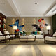 落地窗外的空灵景色纵使透过薄薄的纱帘依旧可以窥探一番,若是落一场雨,那种自然的气息变更为浓烈了。比起之前用色的淡雅,蓝色的加入无疑是现代与禅意的小型会面,宁静的深蓝绘山峦,飞鸟双双归,禅意的韵味从来都是不言而喻。