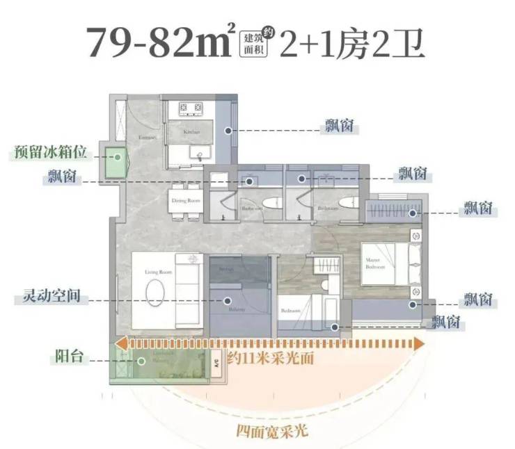 建面约82平2+1房总价400万左右