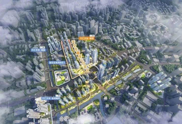 未来万汇天地业主可以在下班后,乘坐地铁1号线或25号线回家,万汇天地规划打造独有的立体自然系统,以双轨交汇的花地湾站为核心,构建花地湾 TOD 超链中心、天空花麓、水廊花埭、混合街区四大城市复合空间,连接生活。