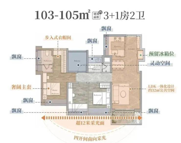 建面约103平3+1房总价480万左右