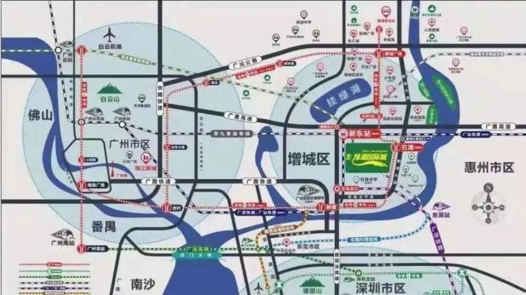 高速:广惠高速、广河高速、广汕公路、荔新公路,35 分钟到广州市区,20 分钟到新塘。