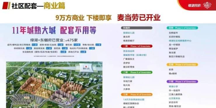 自身有20万心商业购物中心、 自带约8万平方米商业街,其中华一佳、钱大妈、华润万家旗下品牌万家LiFE、多伊份、尊宝比萨、江渔儿等50家品牌商家已开业