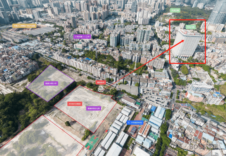 综合医院:楼盘直线 3km 范围内有 4 个一级及以上医院,其中中山大学附属第六医院(院本部)距离楼盘直线约300米,暨南大学附属第一医院距离楼盘 2.4km,南方医科大学第三附属医院距离楼盘 2.8km。