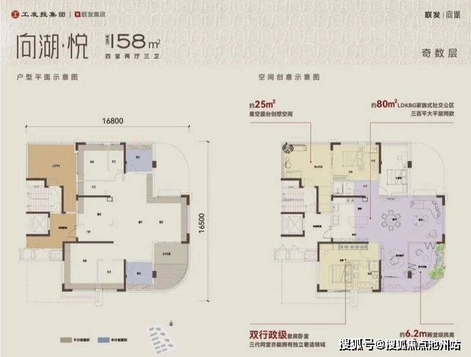 高层建面约158㎡户型,实得面积可达约 199㎡,含 40㎡空中花园与公共平台花园的拓展空间;