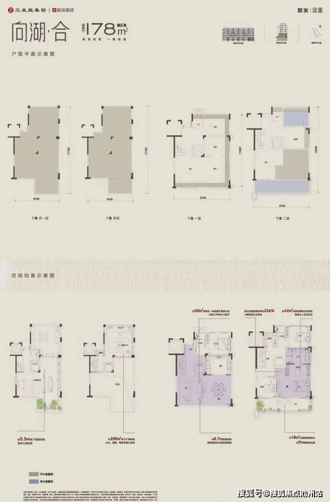 叠墅产品更显震撼:建面约160㎡中叠得房率 141%,建面约 150㎡上叠得房率 201%,建面约 178㎡下叠以 245% 得房率实现 “买一得二” 的空间福利。
