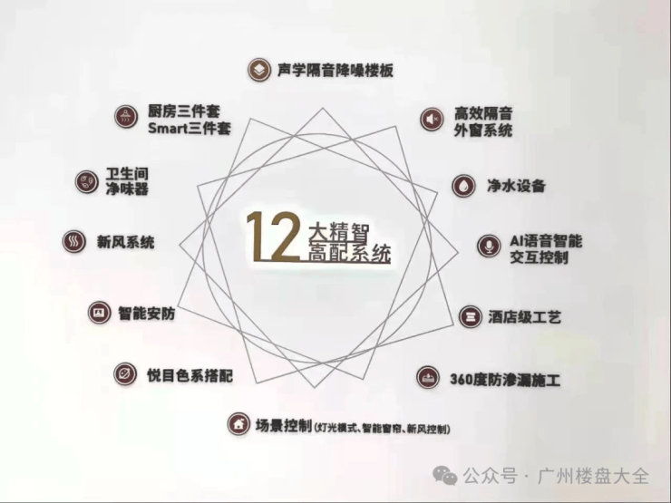 4、产品交标比较高,节省了买家不少装修成本,除了普遍的,例如新风系统、净味器、洗碗机、消毒碗柜、双层隔音、智能安防等都是交标,大家可以看看下面这个图。