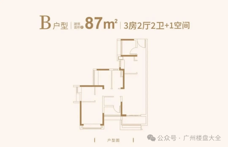 87㎡3+1房空间更大一些,主卧带有私人卫浴,卧室带有多飘窗设计,双开间朝南,采光及通风不错。