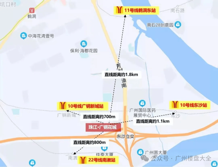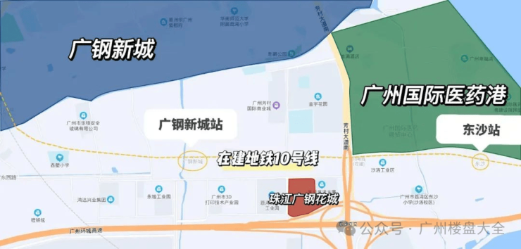 1、交通:广钢花城周边有 3 条地铁线路,其中在建的都10号线,今年就可以开通。广钢新城站距离小区仅700米,步行可达, 2站就能直达海珠,进而通往珠江新城。对于珠城上班的小伙伴十分友好。