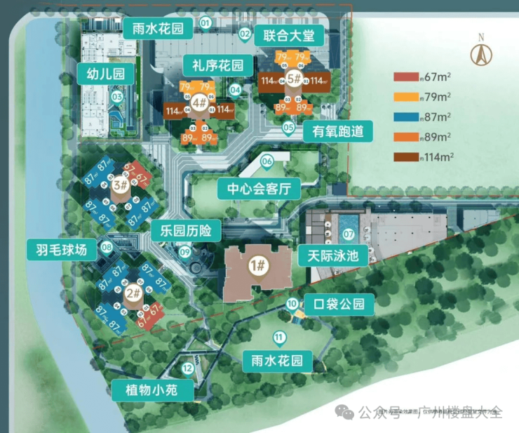 5、产品:在售建面约有 67 m²、79m²和 114 m²的产品。小区虽然不是新规产品,但是每个户型也都做到了90%的得房率。