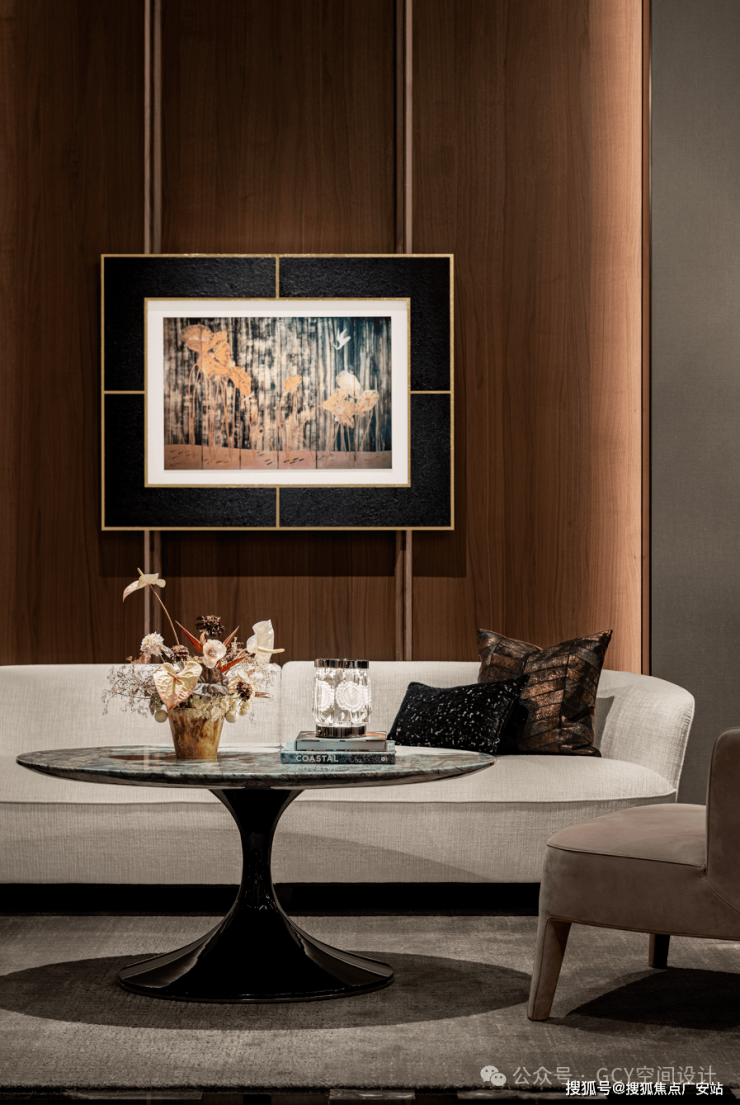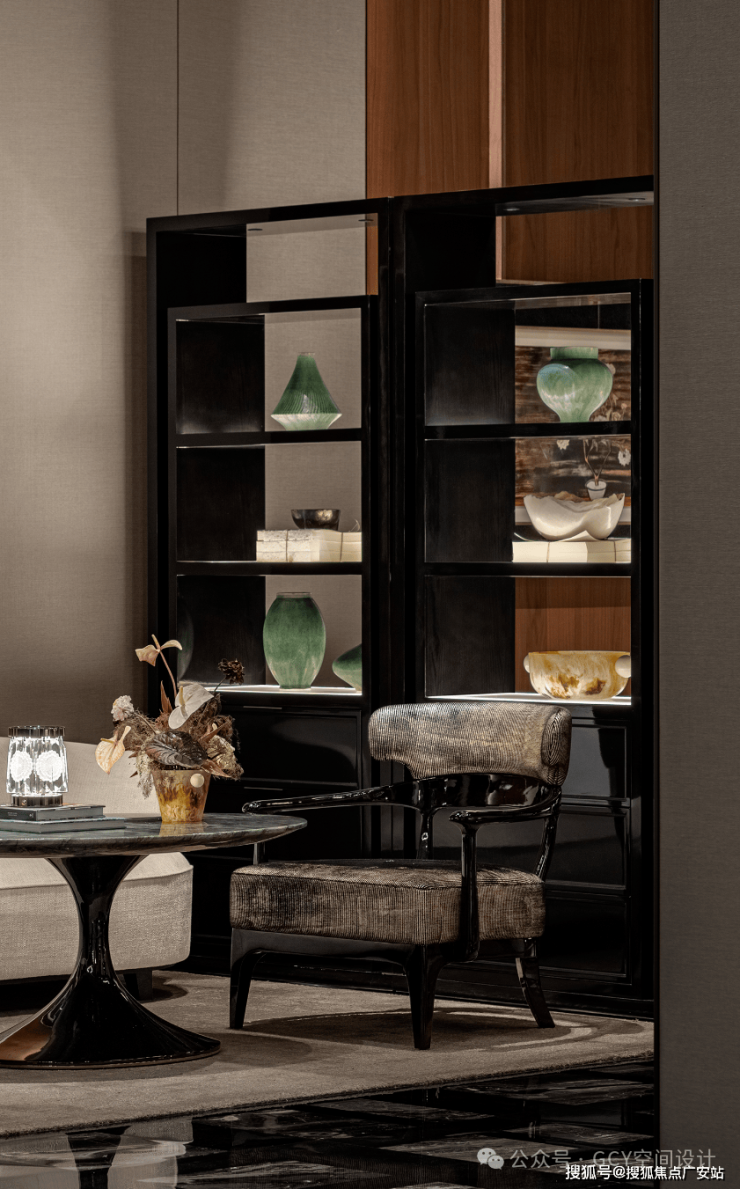 整体风格奢华典雅,通过材质、灯光与艺术陈设的结合,营造出极具格调的视觉体验。
