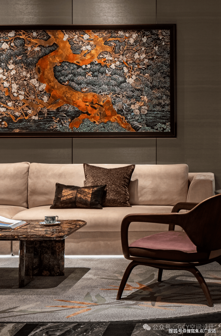 通过色彩对比、艺术陈设、材质搭配、图案装饰,营造出复古奢华的视觉与感官体验。