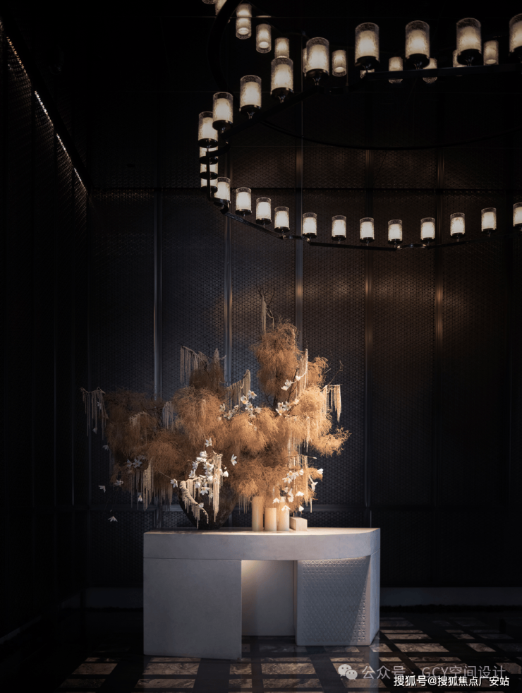 这是一处具有艺术雅致与复古奢华于一体的美学空间,璀璨恍然如梦,每一处停留与凝望,都是对自身喜好的印证,用现代的材料和工艺展现了有地域属性的往日繁华盛景,通过空间叙事营造强烈的剧场感,用不同空间的艺术化处理、尺度的收放、材质的呼应、光影的变换,制造出强烈的视觉效果和独特的美学体验感。