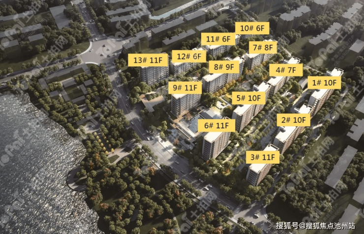 此外,项目公共区域内设置有下沉式庭院、水景及大面积的公共绿地,部分楼栋为首层架空设计。