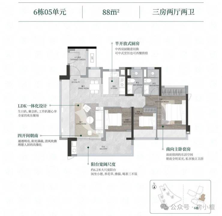 楼栋:共6栋25至32层住宅 ,均为2梯5户