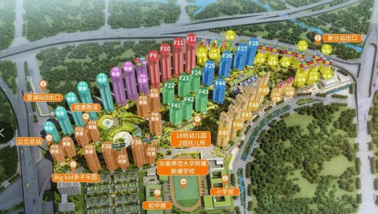 小区里面自带9年华附公立名校教育(全名:华南师范大学附属新塘学校),且由华南师范大学选派原华师附小本部副校长【吴启航校长】,亲任新塘华附校长。