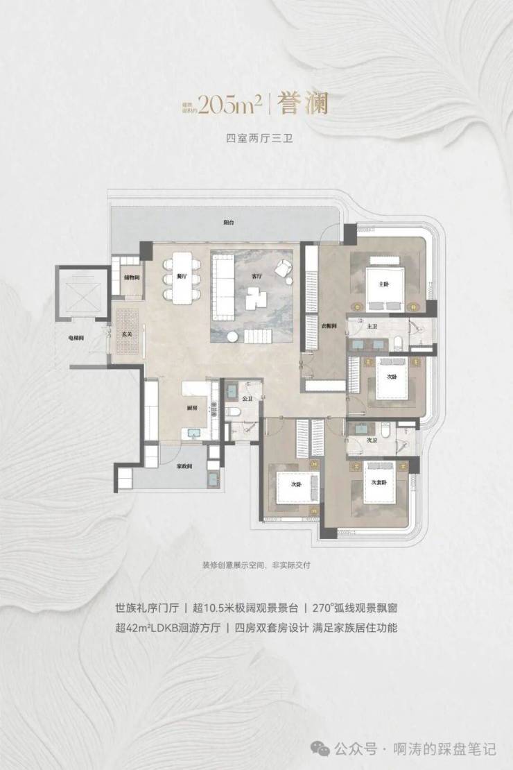【誉澜】建面约205㎡四室两厅三卫,使用率约100%