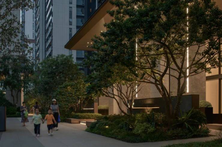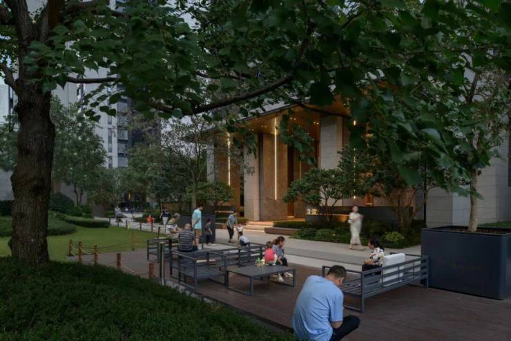 每个入户前场都有一个属于自己的林下花园,更加便于邻里之间互动,林下游玩的欢乐。