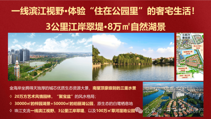 金海岸花园拥有延绵3公里江岸翠堤,一线头排无敌江景视野,极目100万平米湿地公园;拥有繁华都市之心罕见的50000平米珀丽湖公园,以“住在公园里的家”为主题,打造出“中心大湖+江岸3重水景”的景观格局,漫步在社区组团园林里,步步皆景,即使坐在家中,推窗既享受亲园亲水的鲜氧生活!