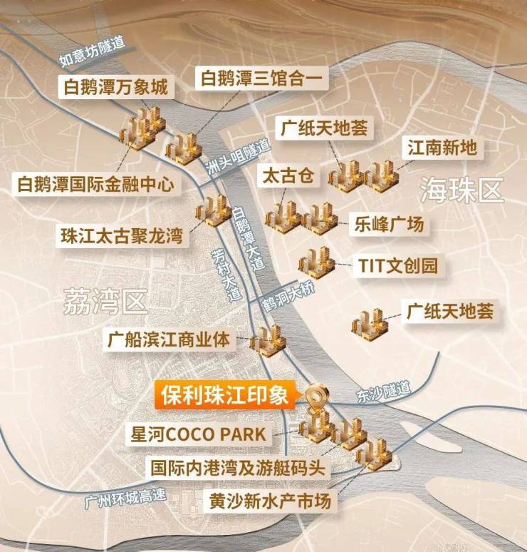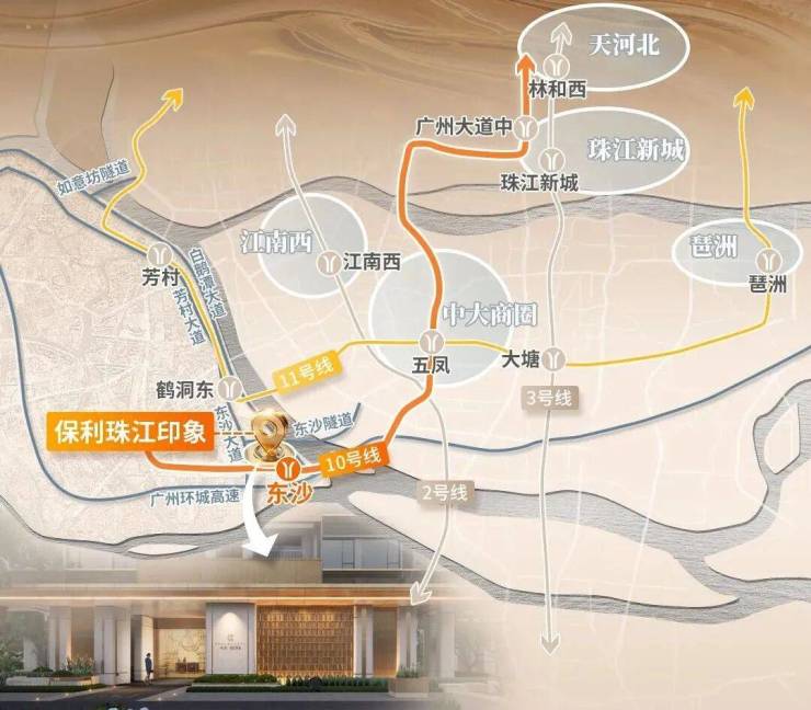 - 地铁:距10号线东沙站(2025年开通)约700米,4站直达珠江新城。