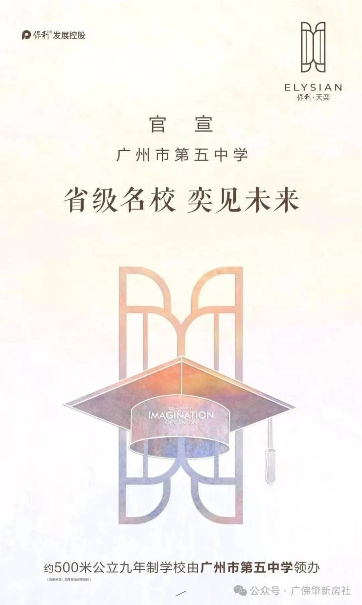 前段时间保利天奕东南侧500米的公立九年制学校,已正式官宣引进广州第五中学办学以及管理,但是值得一提的是该地块还没拍,所以什么时候建,什么时候开学都是未知数。