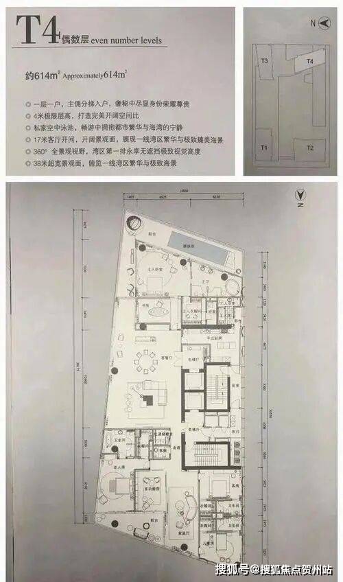 深圳湾壹号公寓由8座塔楼及1座商业建筑组成,由中央水轴分成南北区。北区 T1是写字楼,T2、T3、T4为公寓;南区T5、T6、T8为公寓,T7为环球商务中心,总建筑面积 47.5万㎡。该项目融合顶级公寓、总部办公、传奇莱佛士酒店、定制商业及深湾会于一体, 是集办公、居住、酒店、商业于一体的城市综合体。