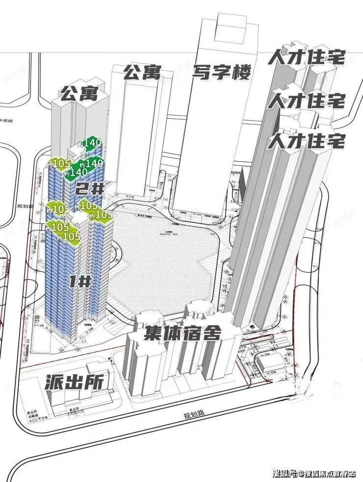 东地块规划有2栋住宅、2栋公寓、1栋写字楼和3栋人才房,住宅总货量预计265户。