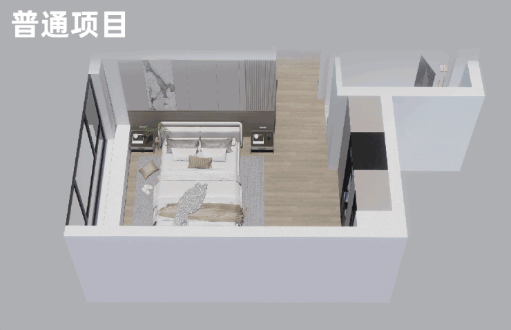 像主卧飘窗,普通项目只有一面,很多新规产品也只有两面,但中旅·璞樾天序连小户型都能做到三面,就算把一面飘窗放置衣柜,也能继续享受270°广角视野,景观面更加开阔。