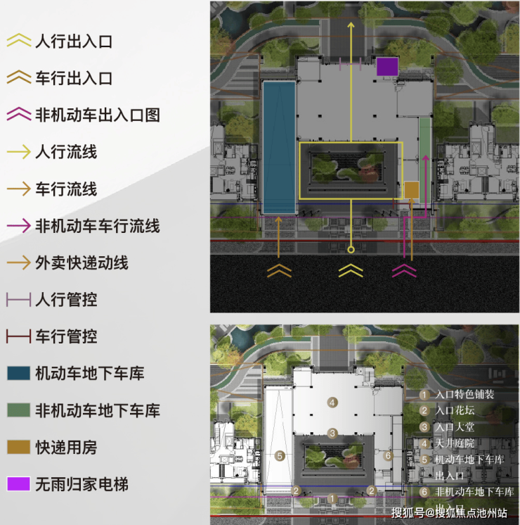 项目把人行、车行、非机动车行动线 “拆成三条独立系统”,还专门设置了外卖动线、快递动线,细节满满。