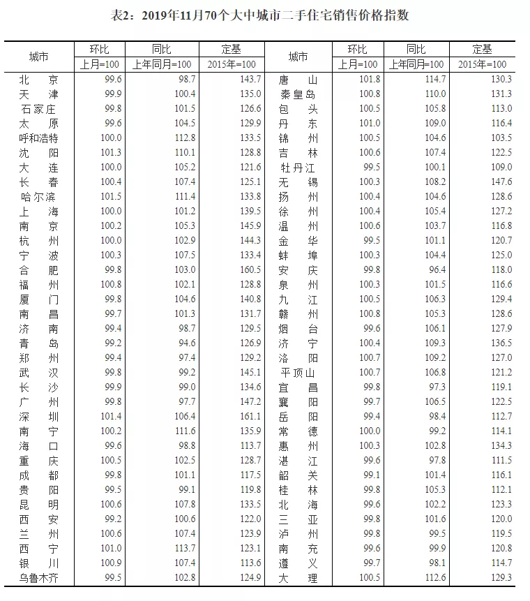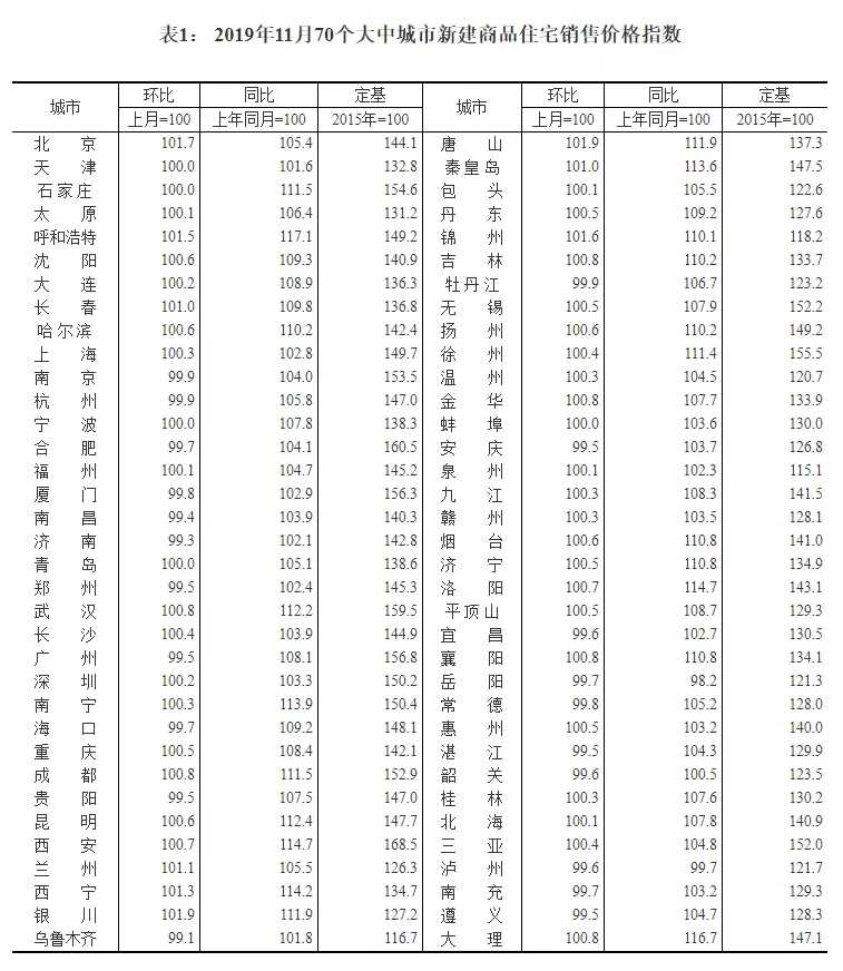 而在近日,国家统计局正式发布了“2019年11月份70个大中城市商品住宅销售价格变动情况”。