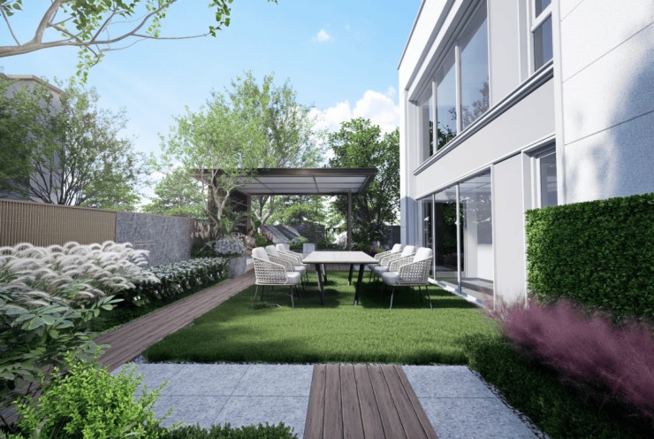 以全盘最小面积建面约128平产品为例,一栋一户,自带前后花园、地下室,整体实用面积超320平。