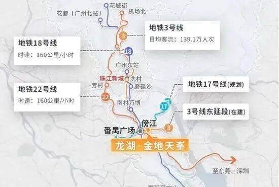 项目位于番禺广场板块,家楼下就是3号线地铁东延段傍江站,现在东延线的工程进度已经达到99%,距离开通时间不远啦