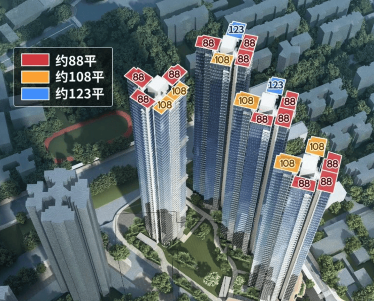 项目体量依然偏小,只有四栋楼,户型为建面约88㎡、108㎡、120㎡三至四房,主打刚改,属于新规后产品,户型能达到120%使用率。