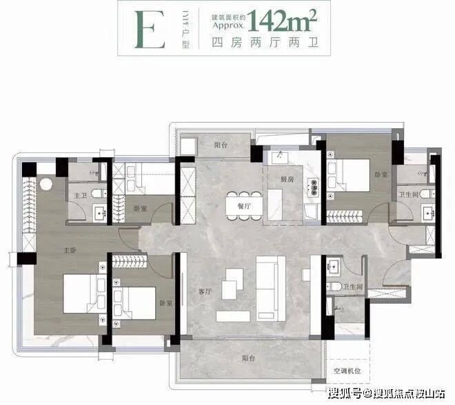 中建未来方洲主力户型为79-142㎡三至四房,得房率高达85%-110%,媲美市面更大户型: