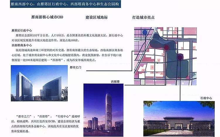从投资的角度看,地段位置首当其冲。 对于SOHO型产品而言,优越的地理位置、区域成长性强是资产升值溢价的核心因素。 海亮·时代ONE位于高新、雁塔、长安三区交汇的黄金十字位置,正是西安大城南的发展较热板块之一,有着较好的成长性。 西安雁塔区规划信息显示,西沣路片区集中了经济区、商贸产业区及公园居住区三区为一体,三区规划和建设的实施,使得整个区域得到迅速的发展。