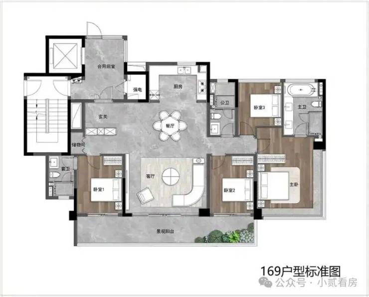 约169平户型自带的空中庭院,整整约34m²使用空间,尺度感相当惊人。